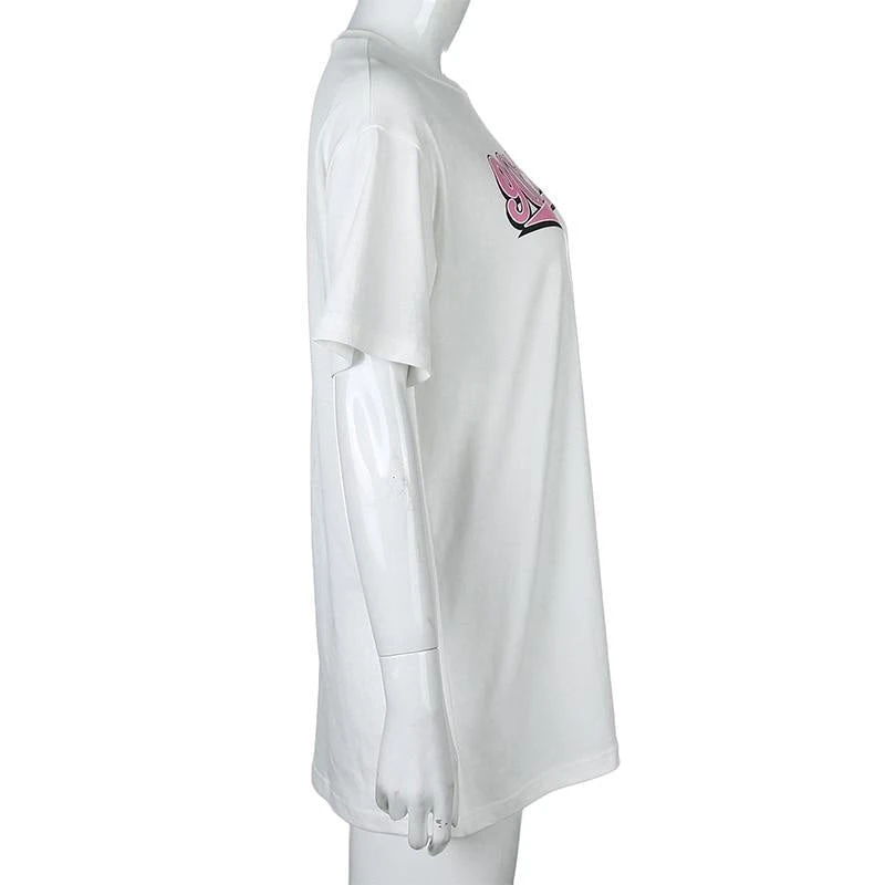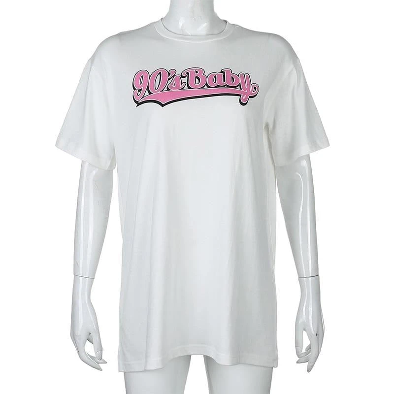 - Calling all 90s babys – this oversized classic cut t-shirt is so versatile, it’s not a want, it’s a NEED, babygirl!