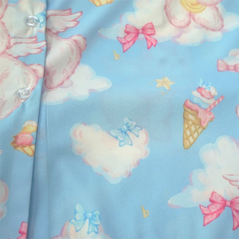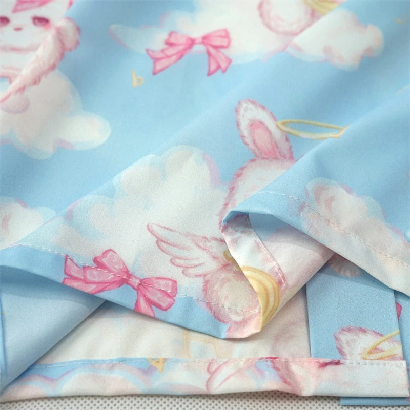 - his collared cutie comes with a cuddly kawaii print featuring angelic bunnies amongst the clouds, made with soft quality fabric and all-over printing.