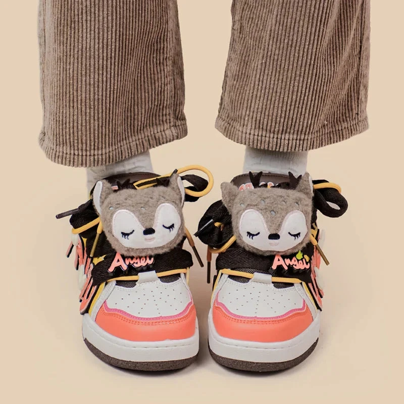 - Artisan Design: These “Angel Fox Sneakers” feature a unique fox motif, with adorable face details on the tongue, enhancing the sneakers’ overall appeal. Perfect for those who love playful and creative footwear.