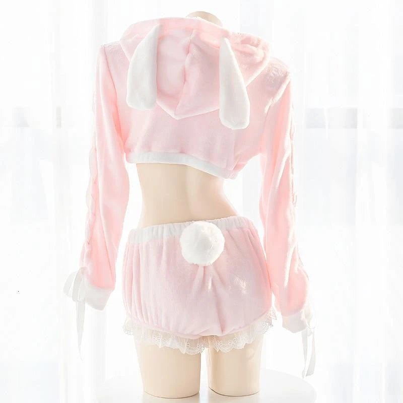 - Includes matching bloomers that are ruffled and ruched for ultra kawaiiness with a cute poofy detachable and optional fluffy white bunny tail on the back!