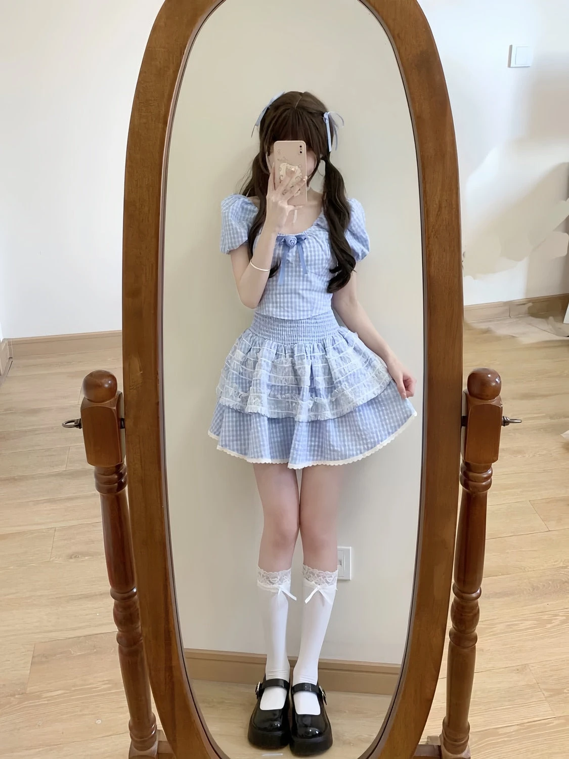 Embrace your love for kawaii fashion with this adorable Blue Plaid Babydoll Outfit Set! Perfect for those who love charming and youthful styles, this outfit set is a must-have for any fashion-forward wardrobe.