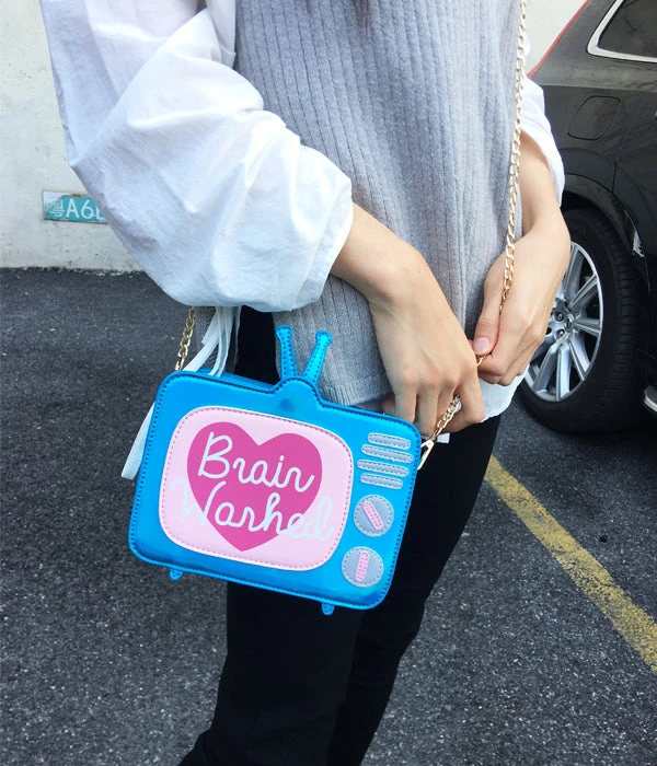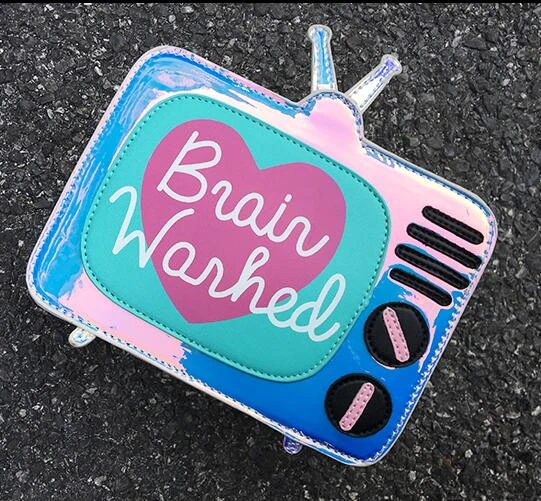 These k-pop inspired holographic brain washed vintage television 3d shaped bags are the perfect statement piece! An instant pop to a bland outfit!