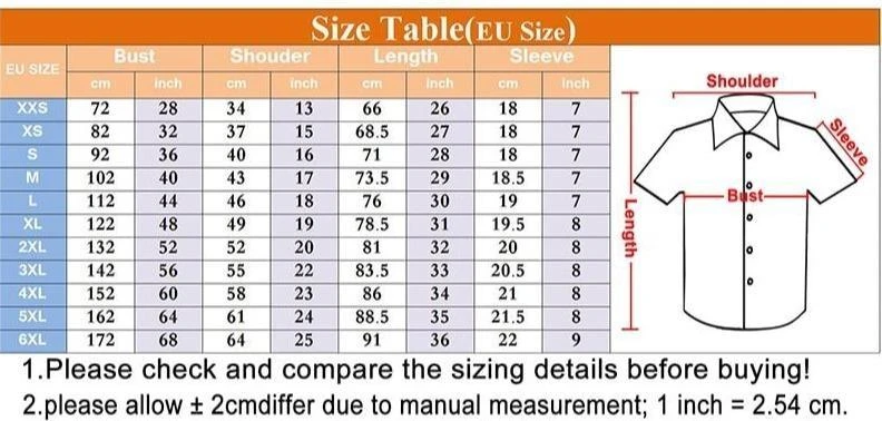 | Size | XXS, XS, S, M, L, XL, XXL, 3XL, 4XL, 5XL, 6XL |