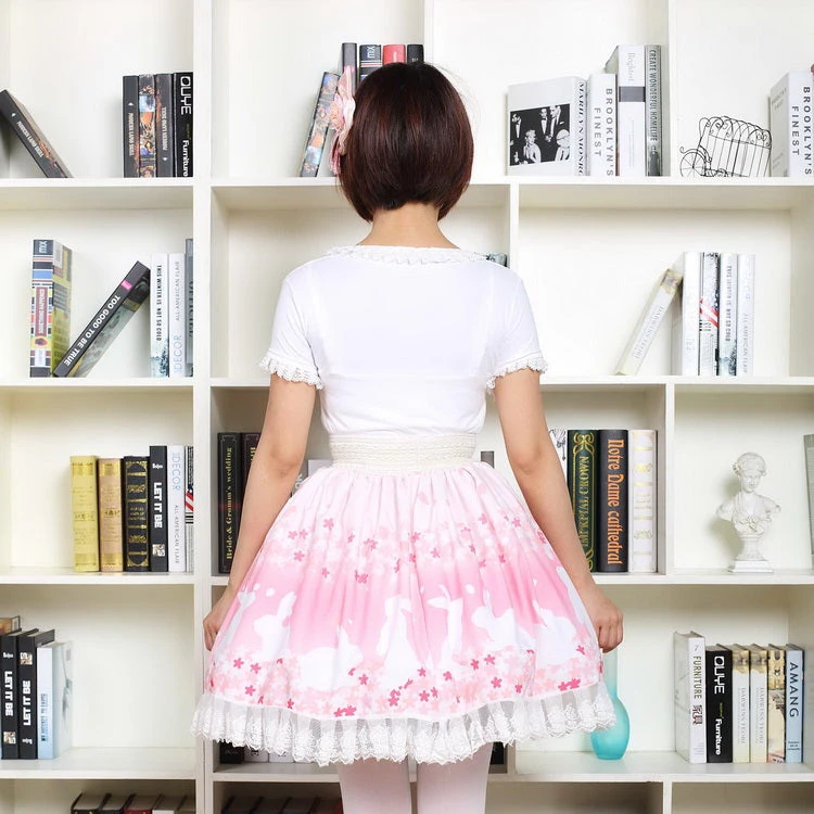 This beautiful pastel pink bunny rabbit (or kitten) & cherry blossom flower skirt is a pink princesses dream come true.