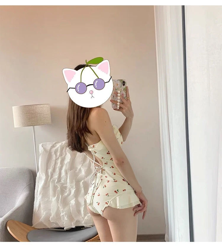 - This sweet white & red cherry print adult onesie is perfect for lounging around and being kawaii af.
