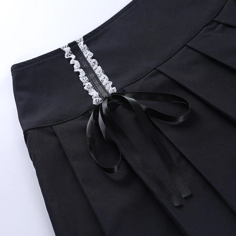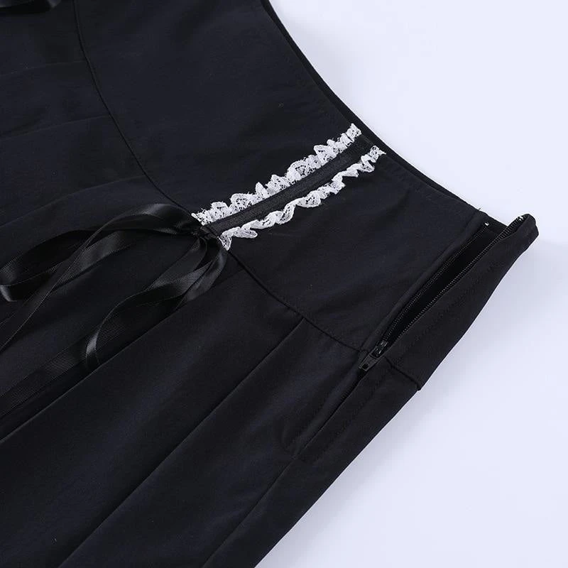 This luxurious and kawaii gothic black corset skirt has details to die for!