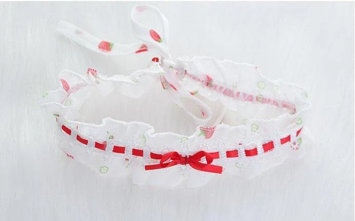 This sweet strawberry-polkadot farm girl inspired set combines the innocence of youthful bows and ruffled sleeves, with the kawaii appeal.