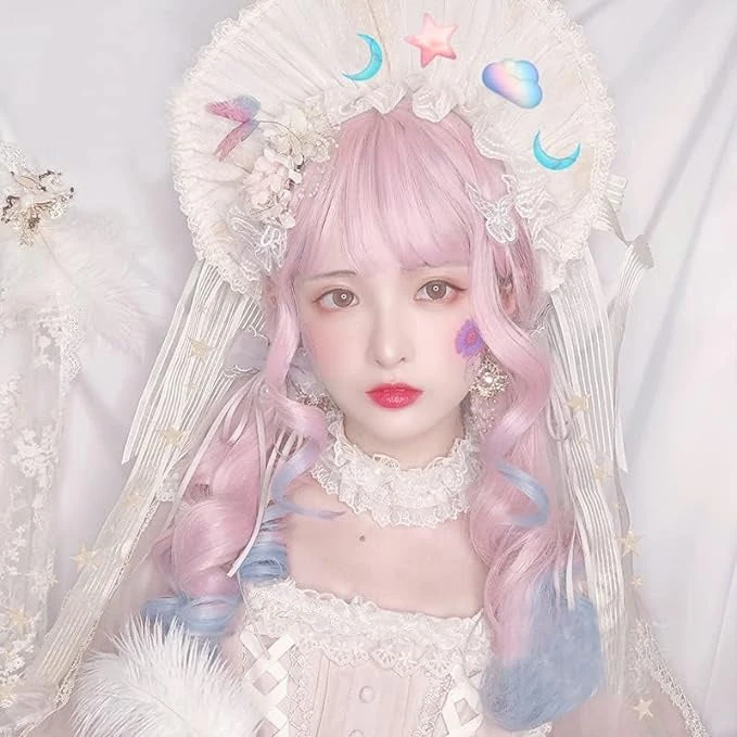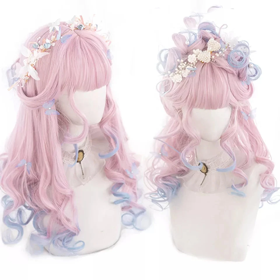 - This stunning pastel wavy long hair cosplay wig combines a sweet fringe with girly pastel colors beautifully peppered in! A gorgeous combination.