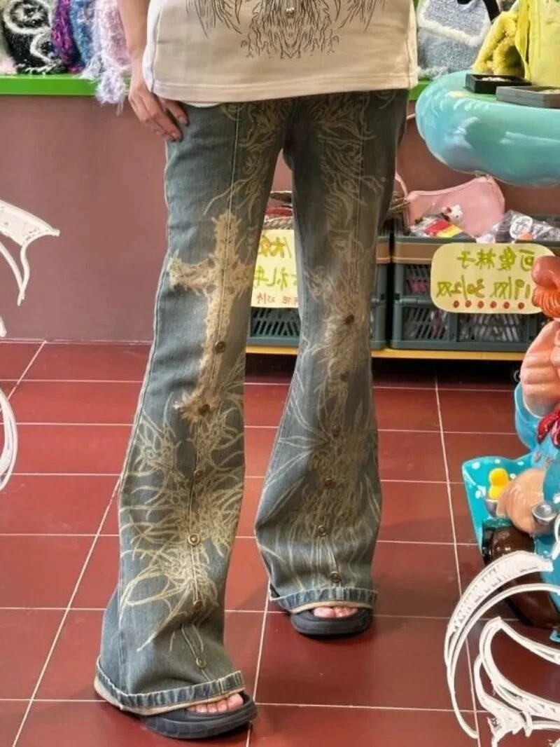 Introducing our Distressed Y2K Grunge Flare Jeans – your ticket to a time when grunge was a lifestyle and fashion was fierce! Slip into these playful denim wonders and let the 90s rocker in you groove. 🎸