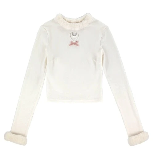 - Comlete it with a beautiful long sleeve turtleneck with a heart peephole and fur trim in white or pink, or grab a bralette top in white or pink!