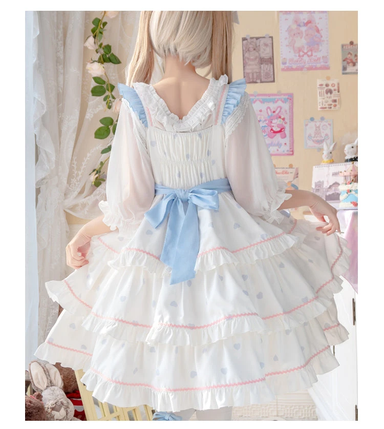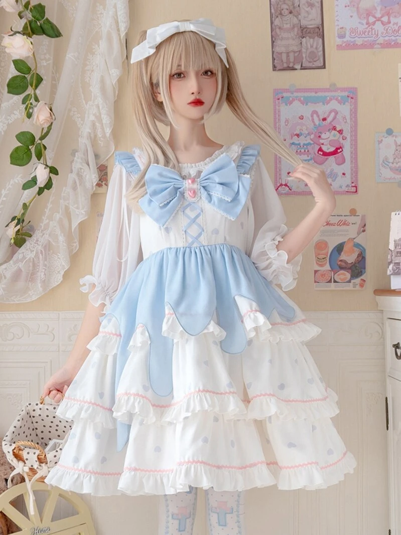 This polkadot & dripping layered cake style dress has stunning bow details, ruffled trim, and a beautiful flowing skirt that looks incredible with a petticoat.Â