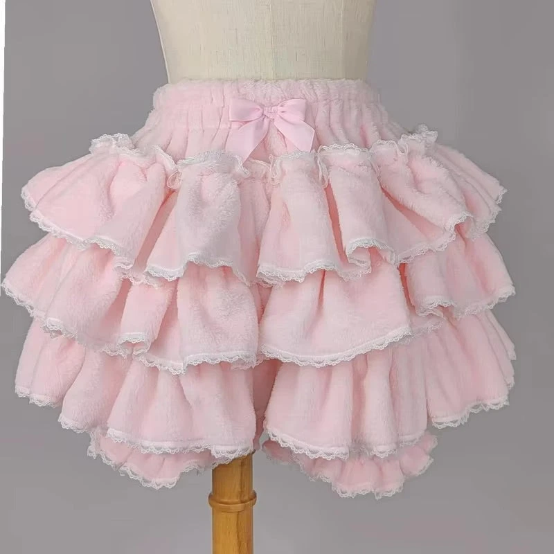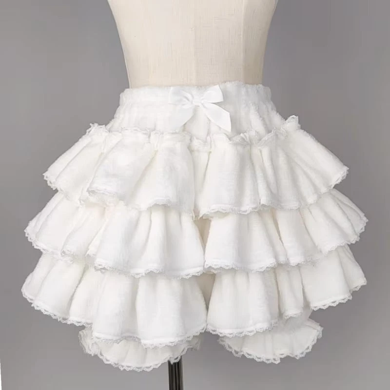 The “Fluffy Ruffled Bloomer Pants” are all about soft comfort and cute style! Perfect for adding a touch of kawaii aesthetic to any outfit, these bloomer pants feature layers of ruffles that create a wonderfully fluffy look.
