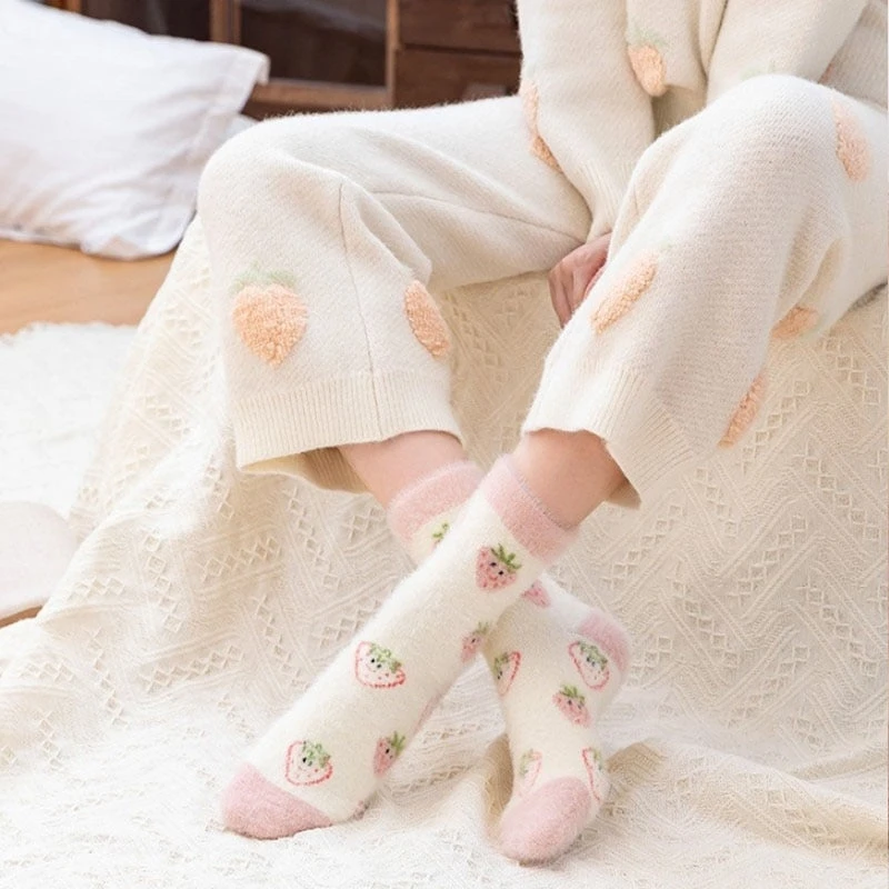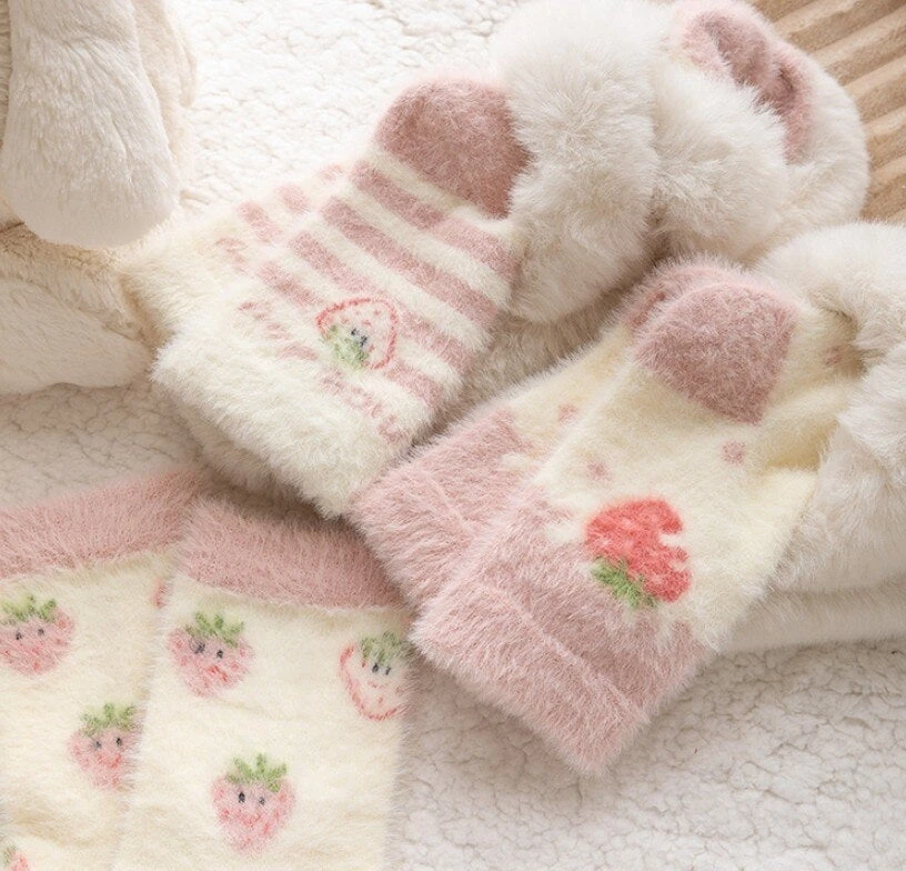 - et ready to keep your feet warm and stylish all day long with our Fuzzy Strawberry Socks!