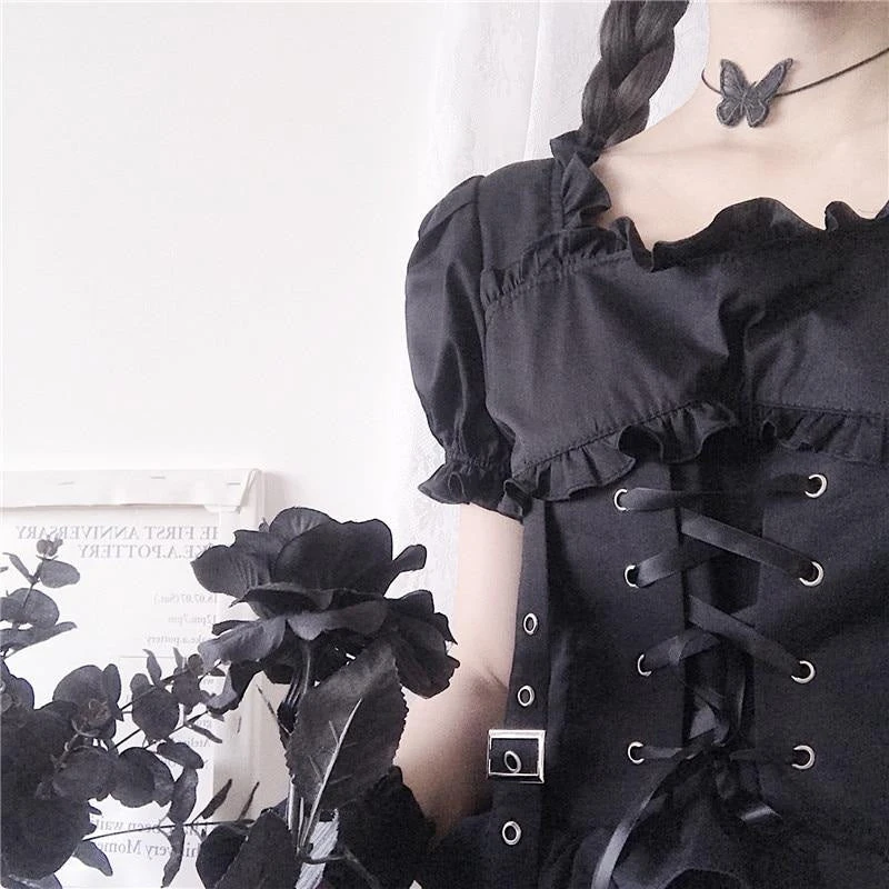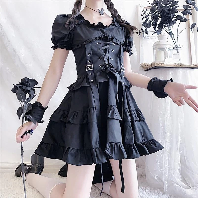 SKU: A2F3Y 5857415135388 Category: Dresses Tags: Black, Dress, Dresses, Goth, Goth girl, Gothic lolita, Kawaii, Kawaii babe, Lolita dress, Lolita dresses, Mini dress, Puffy sleeve, Punk, Renaissance, Short sleeve, Victorian
