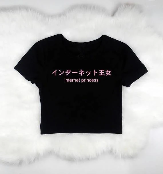- This adorable black or white cropped belly shirt is perfect for princesses who spend all their time on the internet!