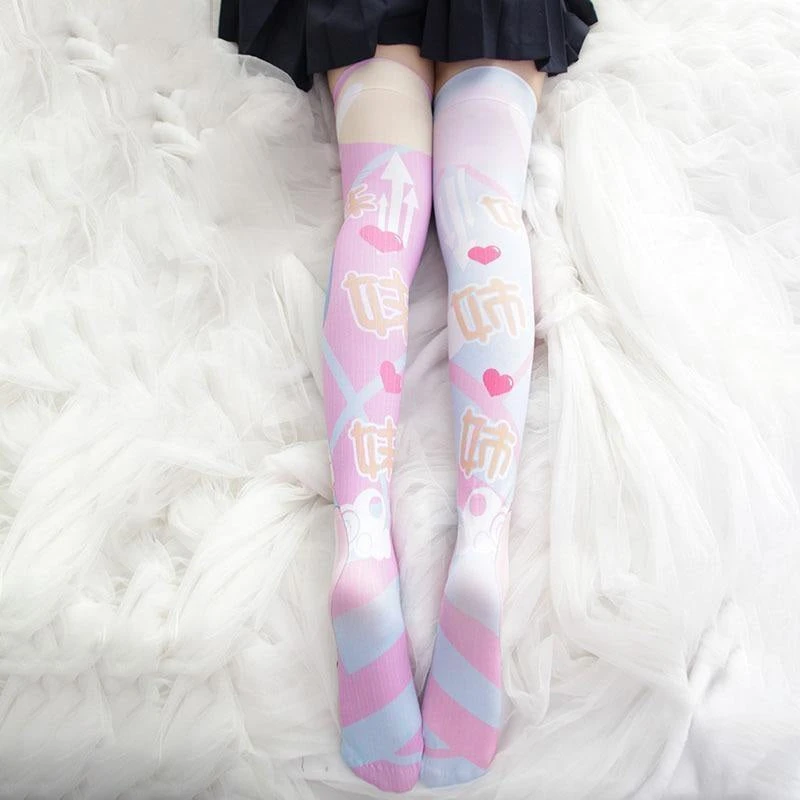 - These kawaii anime inspired stockings have a vibrant pastel, fairy-kei, and menhera inspired print that compliments any  kawaii outfit!