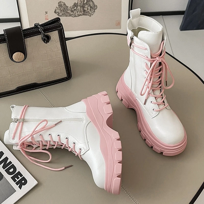 - Colors & Styles: Available in sleek black with striking white accents or in soft pastel pink and white, these boots are perfect for those who appreciate both classic and playful styles.