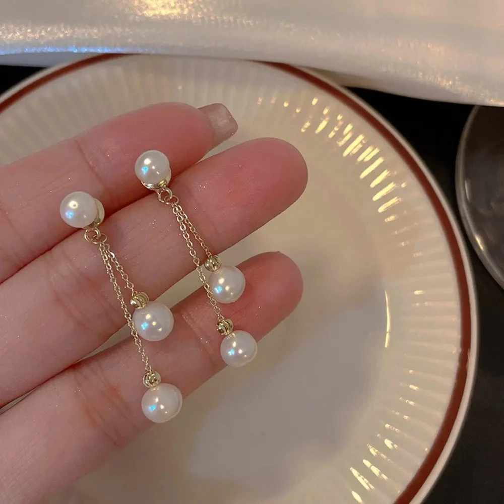 - Material and Craftsmanship: Each earring features lustrous pearls delicately hung on fine golden chains, showcasing exceptional craftsmanship.