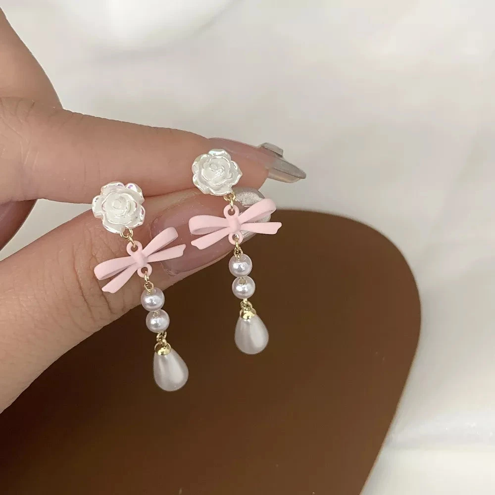 - Color Variants: Available in serene white pearls with pink ribbons and pure white roses, these earrings cater to different styles and preferences.