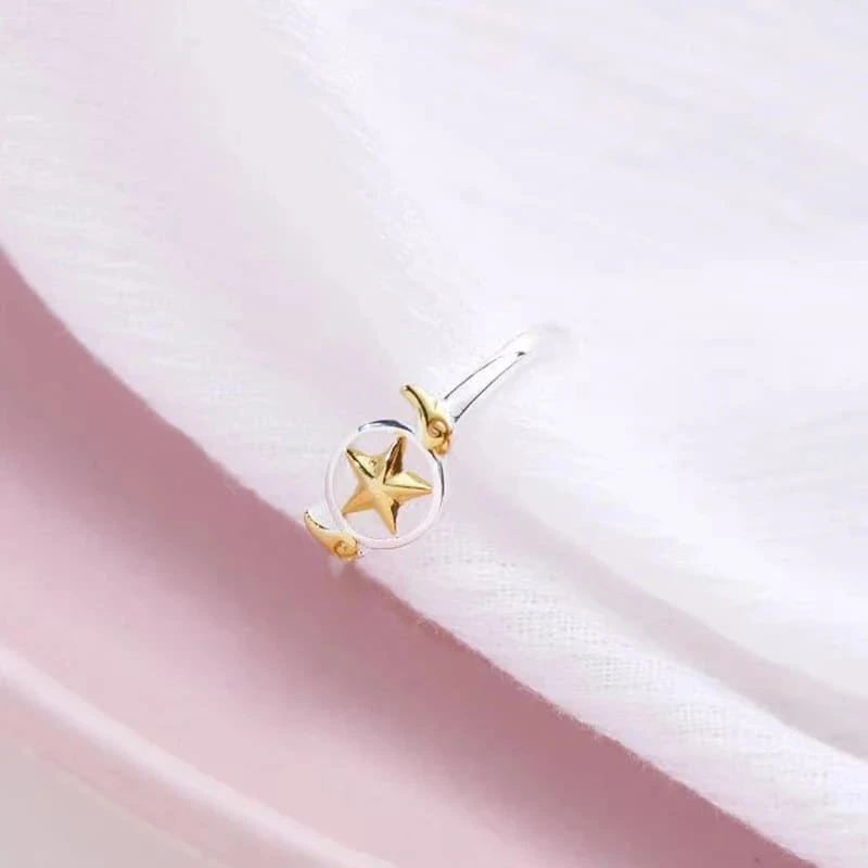 Features a golden 3D star set in a circular silver band for bold celestial energy