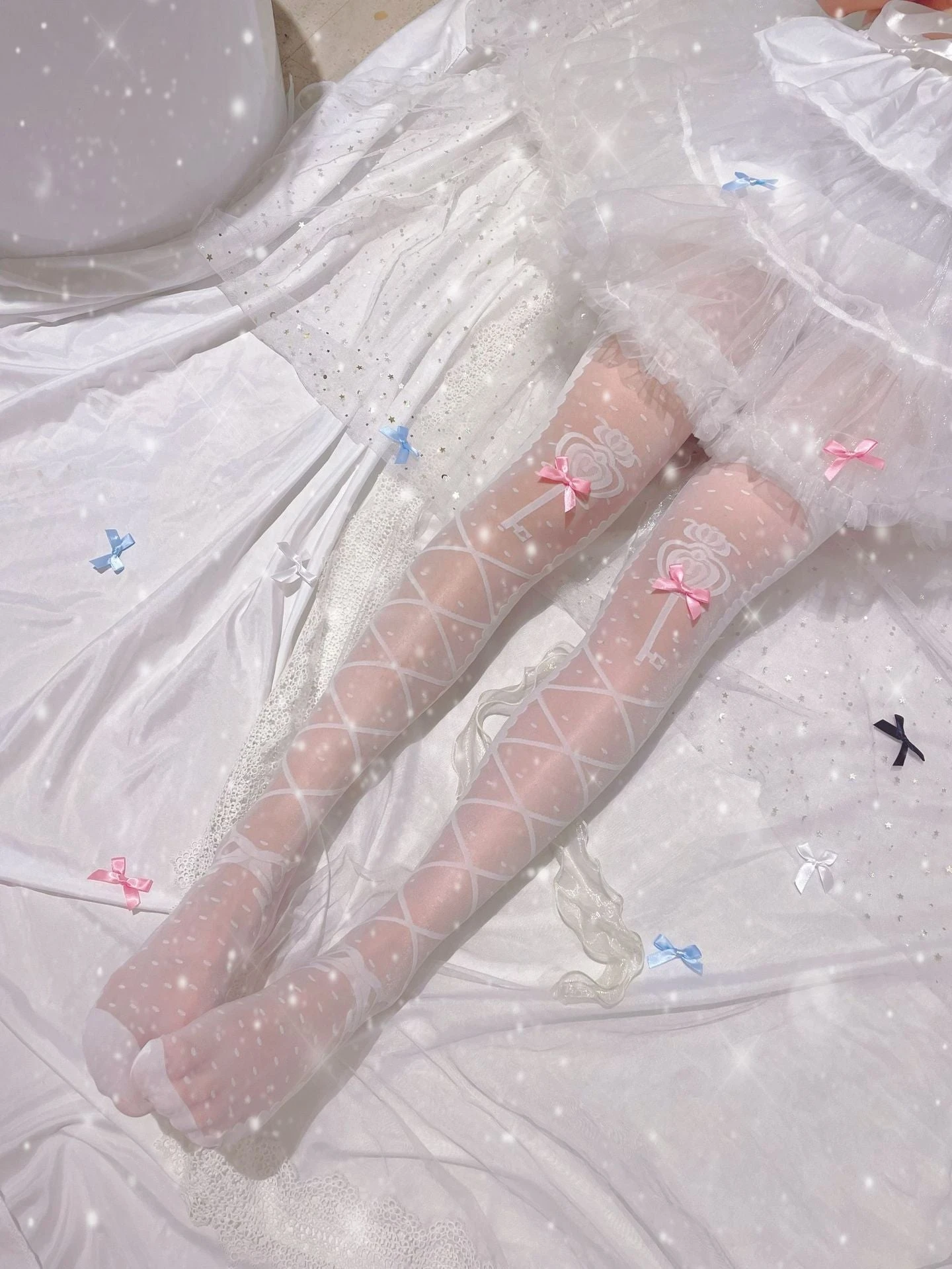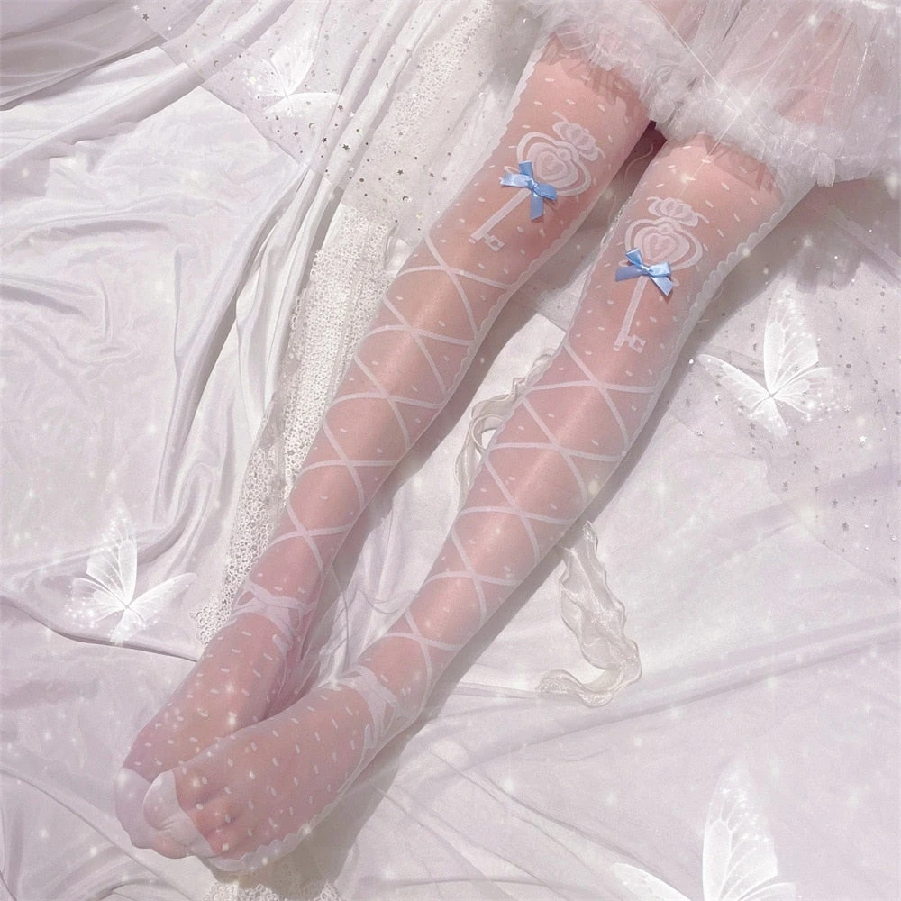 Elevate your kawaii look with our Sheer Nylon Thigh Highs! These stockings are the perfect addition to any fairycore or kawaii outfit, and will make you feel like a true princess. Here are some features of these elegant stockings: