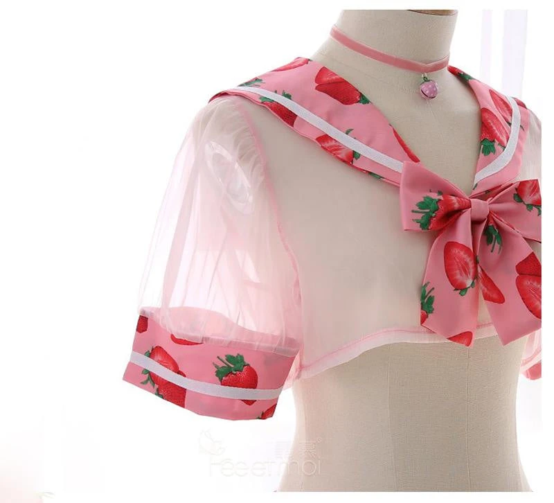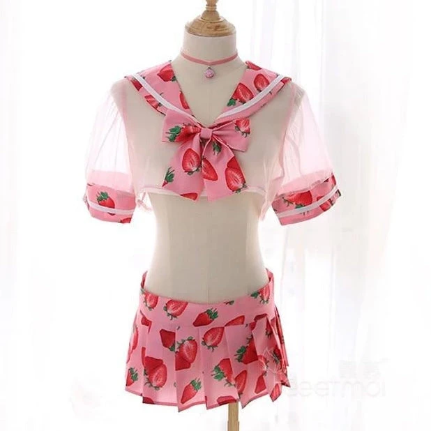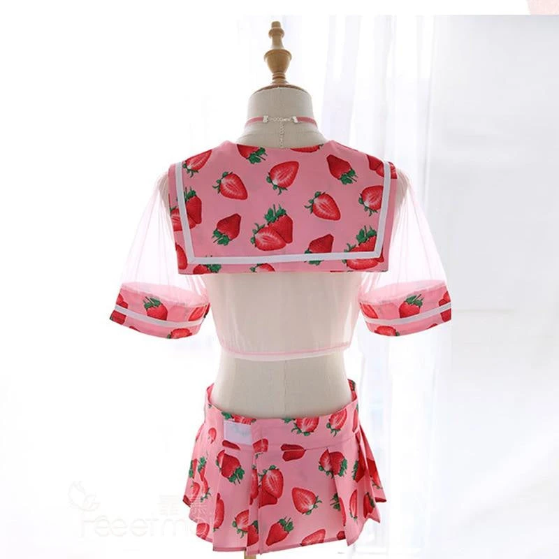 - This adorably sweet school girl inspired lingerie set combines ripe juicy berries mixed with see-through mesh, caped style school girl top, and a pleated skirt strawberry skirt for the perfect combination of kawaii and seduction!