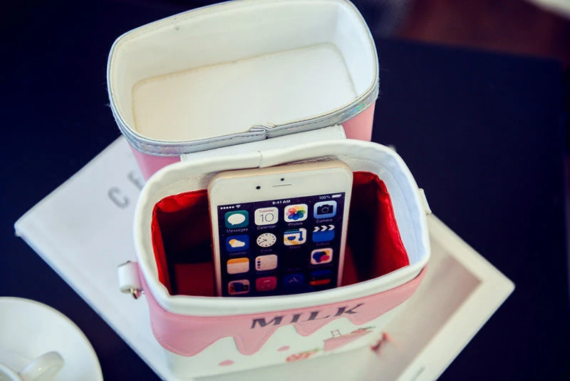 - Introducing the adorable “Strawberry Milk Handbag,” perfect for those who adore a splash of kawaii in their wardrobe. This cute handbag features a pastel pink body with a playful strawberry milkshake design, complete with a faux straw poking out the top, making it a unique addition to your purse collection.