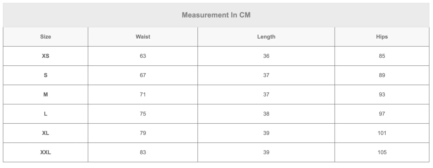 - XS: Length:40cm/15.7in Waist:63cm/24.8in