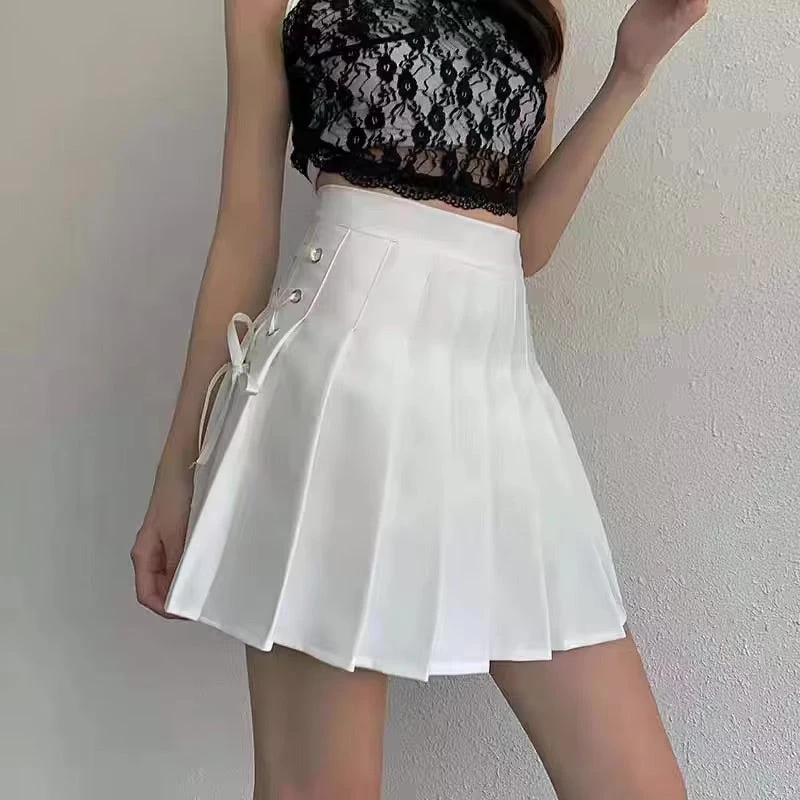 - These adorable pleated and corset style skirts are perfectly preppy and kawaii!Â