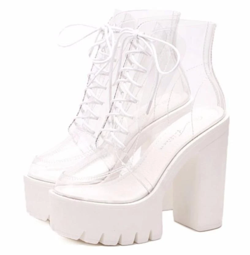 - These chunky square heeled baby doll ankle boots are the perfect addition to any kawaii outfit, with a clear TPU transparent upper body!Â