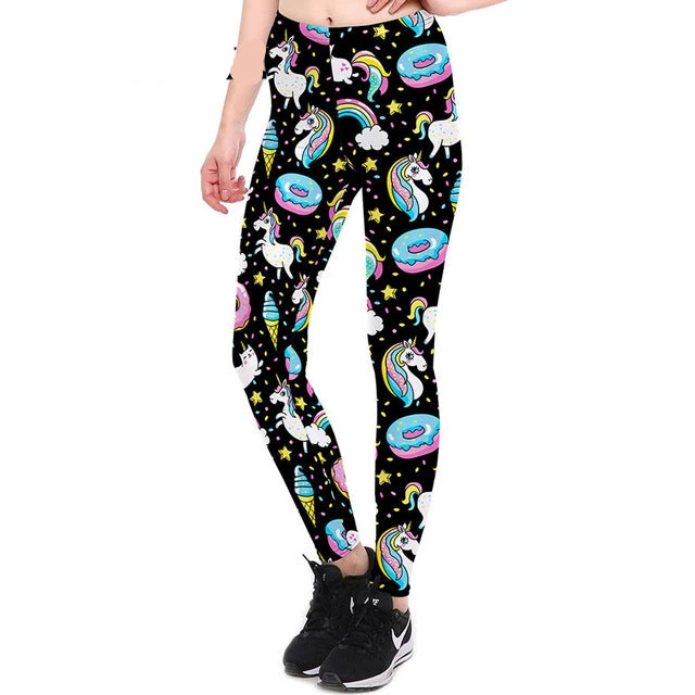 - A gorgeous pair of unicorn themed leggings in plus sizes up to 4XL! Rainbows, icecream, donuts, and unicorns – what’s not to love?