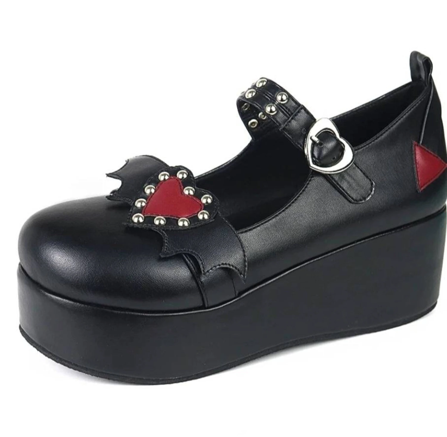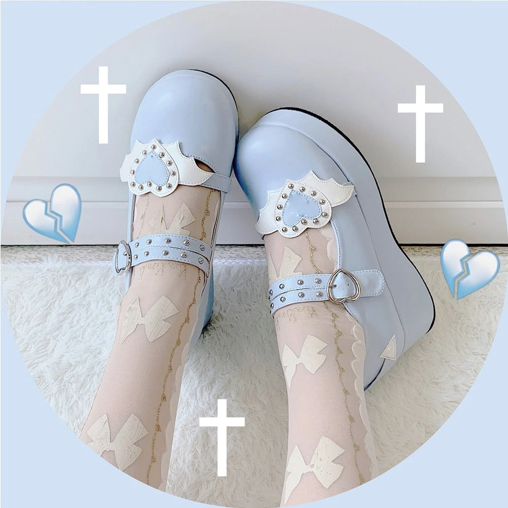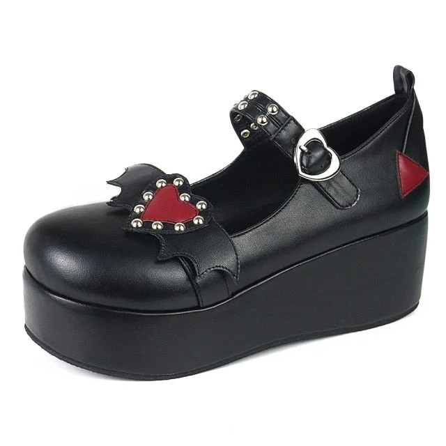 - These badass platform wedge heart-buckle shoes scream “Babydoll”!