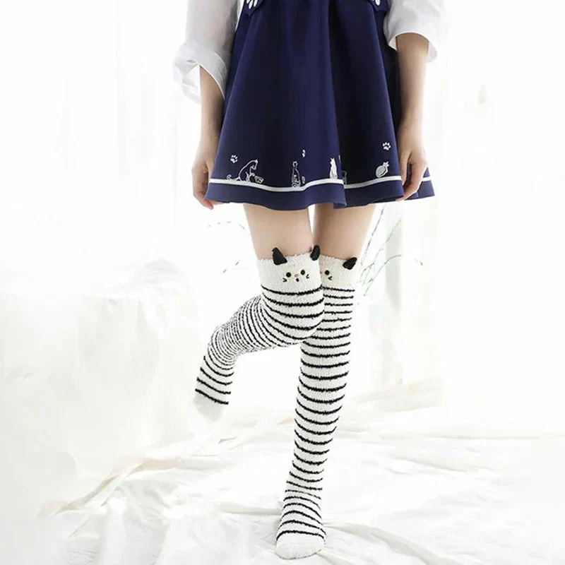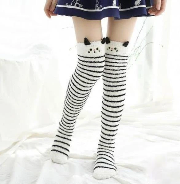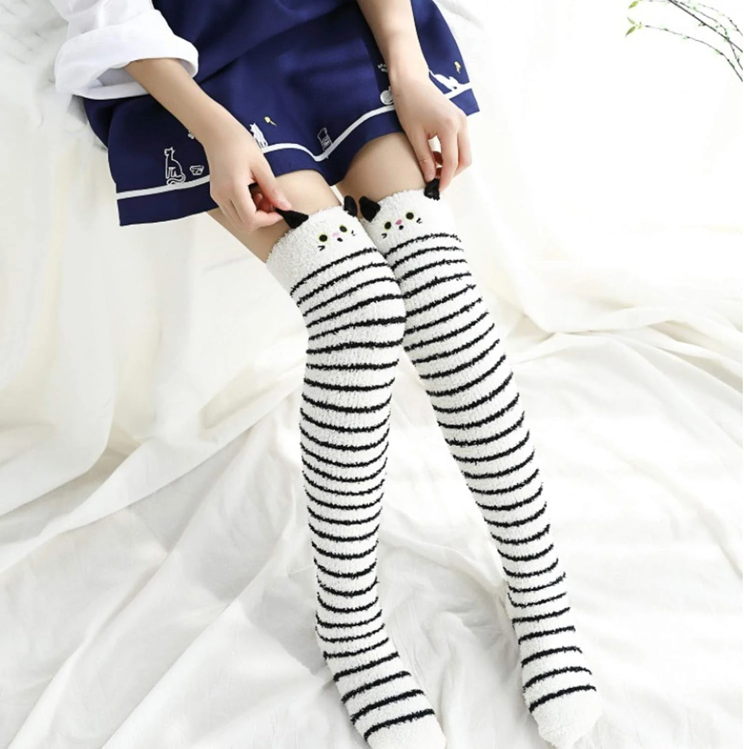 - These fuzzy and soft thigh high stockings will have you feeling like a princess. Warm, cozy, and so soft on your skin.