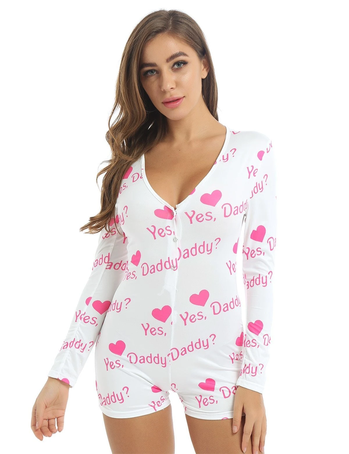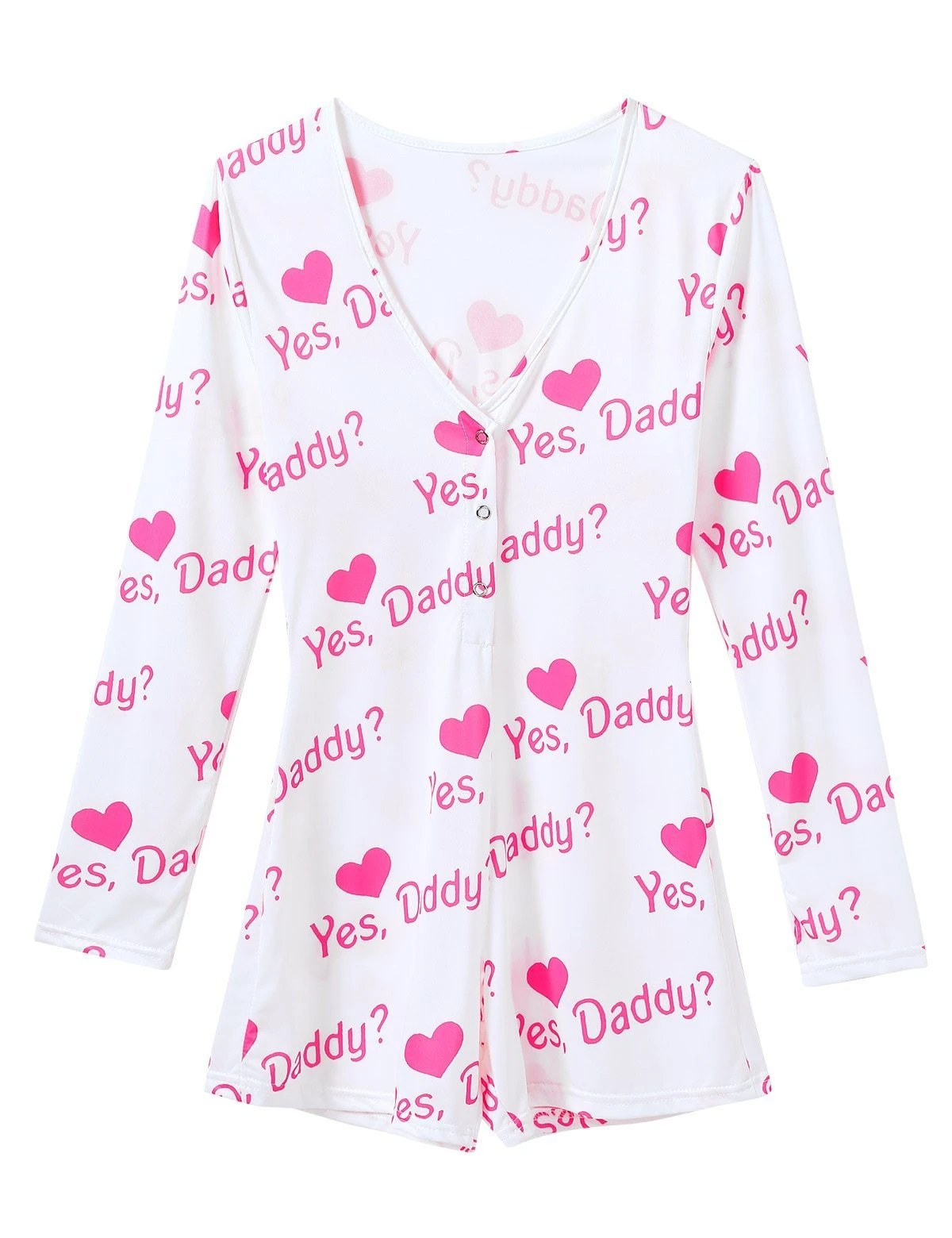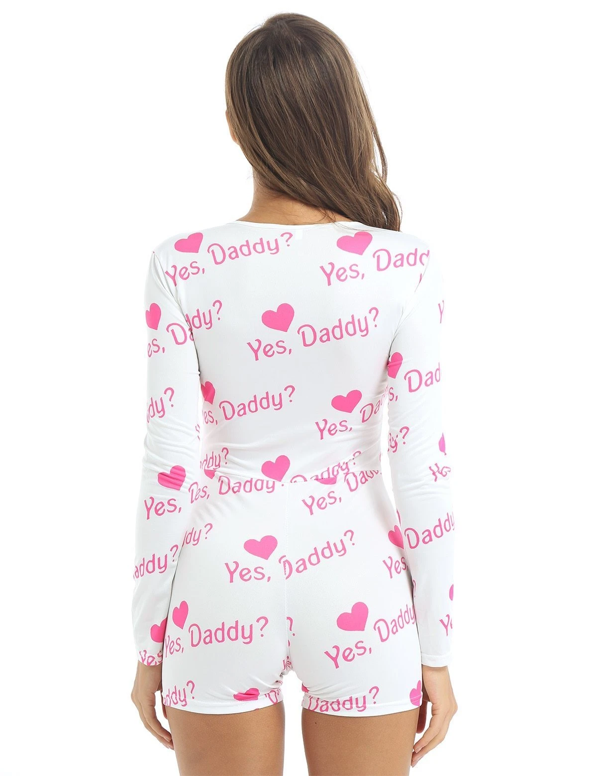 - This sassy “Yes Daddy” long-sleeve romper is so sweet & cozy, you’ll want to romp around in it 24/7!
